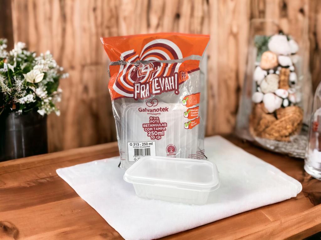 Pote Retangular Com Tampa 250ml G313 Kit Com 10cj Galvanoteck é um produto versátil e prático, ideal para armazenar alimentos no freezer ou aquecê-los no microondas. Ele é indicado para armazenar diferentes tipos de alimentos, como sopas, molhos, carnes, vegetais, frutas, entre outros.